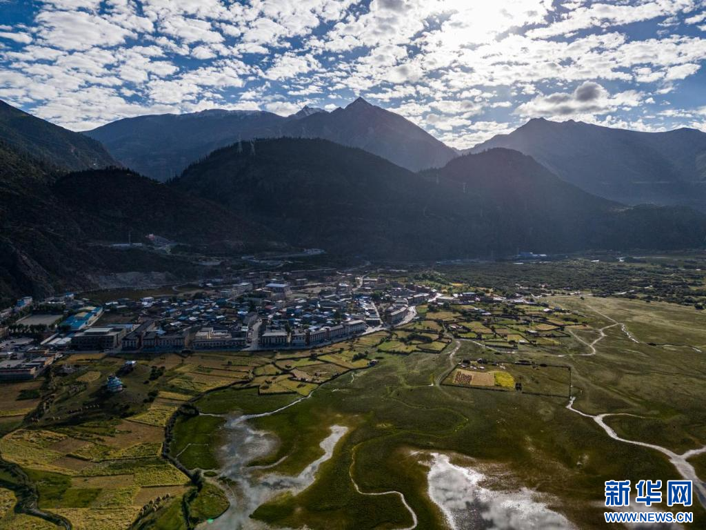 圖為8月18日拍攝的八宿縣然烏鎮(zhèn)(無(wú)人機(jī)照片)。 新華網(wǎng)發(fā) 彭瑋希攝