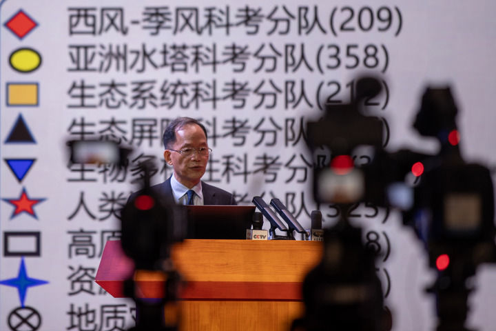 2024年8月18日,第二次青藏科考隊隊長姚檀棟院士在拉薩對本次科考10大任務的重要成果進行集中發(fā)布。 新華社記者 姜帆 攝