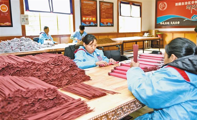 2008年6月,藏香制作技藝被列入國(guó)家級(jí)非物質(zhì)文化遺產(chǎn)名錄。經(jīng)過(guò)多年發(fā)展,藏香已成為西藏自治區(qū)極具發(fā)展?jié)摿Φ奶厣a(chǎn)業(yè)之一,越來(lái)越多的藏香加工廠吸納當(dāng)?shù)厝罕娋蜆I(yè),帶動(dòng)群眾增收致富。