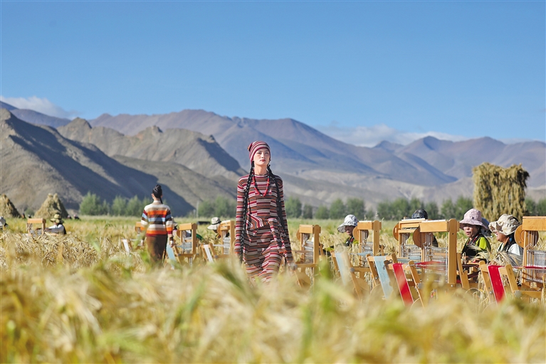如果說隨風搖曳的金色青稞是江孜的“老名片”,那么從雪域高原走向國際奢侈品舞臺的氆氌已然成為“新名片”。