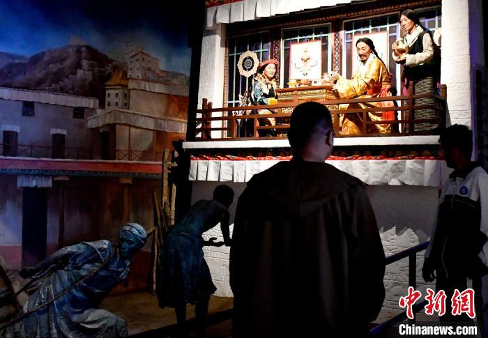 圖為9月14日,觀眾在西藏百萬(wàn)農(nóng)奴解放紀(jì)念館日喀則分館內(nèi)看展覽。中新社記者 李林 攝