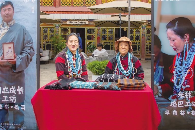 夏扎大院位于拉薩八廓南街,建于19世紀初。這座藏式石木結(jié)構(gòu)大院,不僅建筑精美,更是唐卡藝術(shù)的傳承之地。不同于其他古建大院“酒店加民宿”二合一的經(jīng)營模式,在這里,古建大院的古樸韻味與手工藝人的精湛技藝交相輝映。夏扎大院于2019年5月被評選為國家AAA級旅游景區(qū),又于2021年12月被評為首批自治區(qū)非物質(zhì)文化遺產(chǎn)旅游景點。此次卓番林·措瓦品牌入駐夏扎大院,卓瑪在談及選址考量時說,提升曝光度是重要一環(huán),在古建大院“邂逅”西藏傳統(tǒng)手工藝,可以吸引更多區(qū)內(nèi)外游客的目光,促使他們深入探索并理解西藏傳統(tǒng)手工藝的獨特魅力。