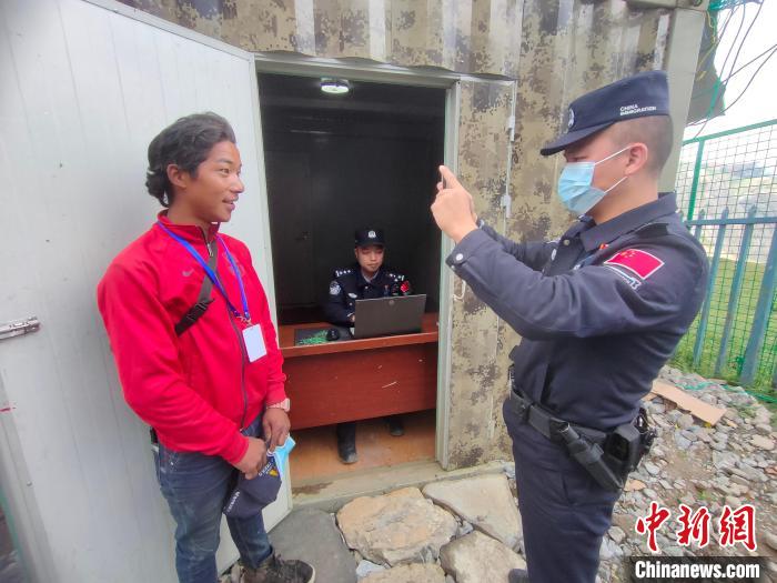圖為吉隆出入境邊防檢查站民警在貢當(dāng)傳統(tǒng)邊貿(mào)點(diǎn)對入境邊民進(jìn)行人證對照。 季馨 攝