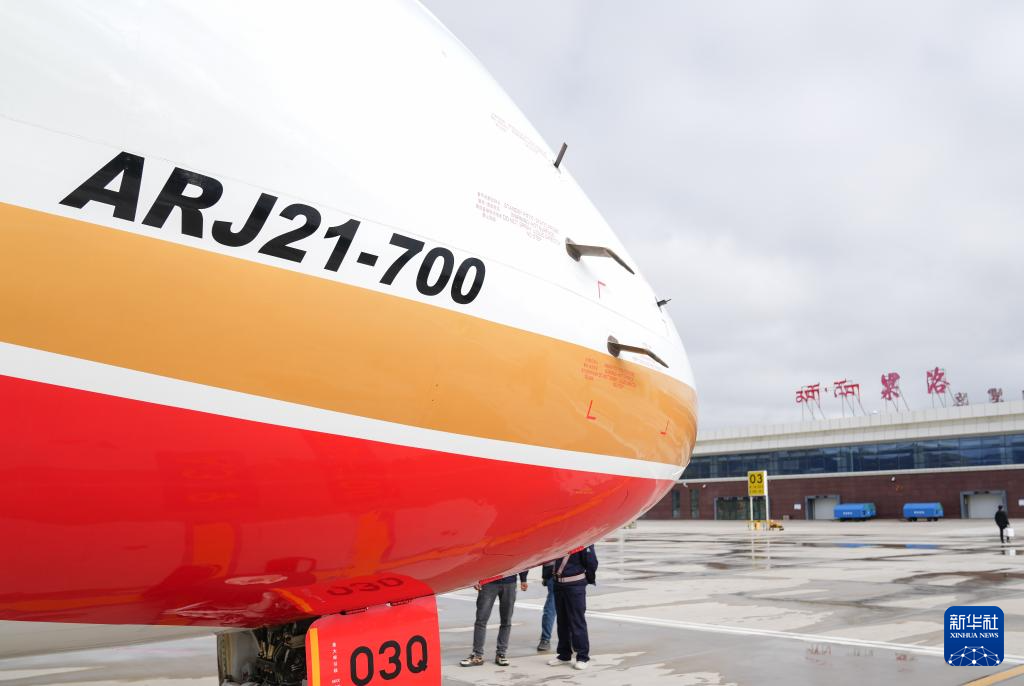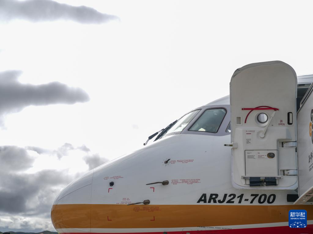 9月21日,國產(chǎn)商用飛機ARJ21飛抵青海果洛瑪沁機場。新華社記者 丁汀 攝