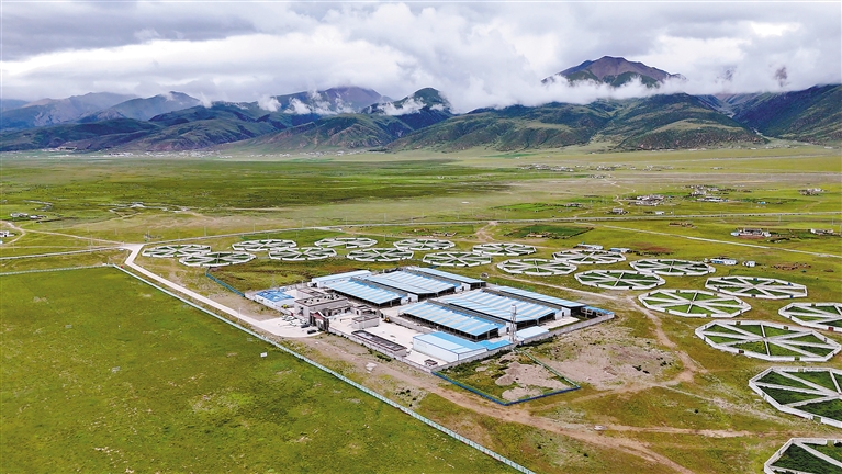 圖為俯瞰拉薩市當雄縣龍仁鄉(xiāng)郭慶村牧場。