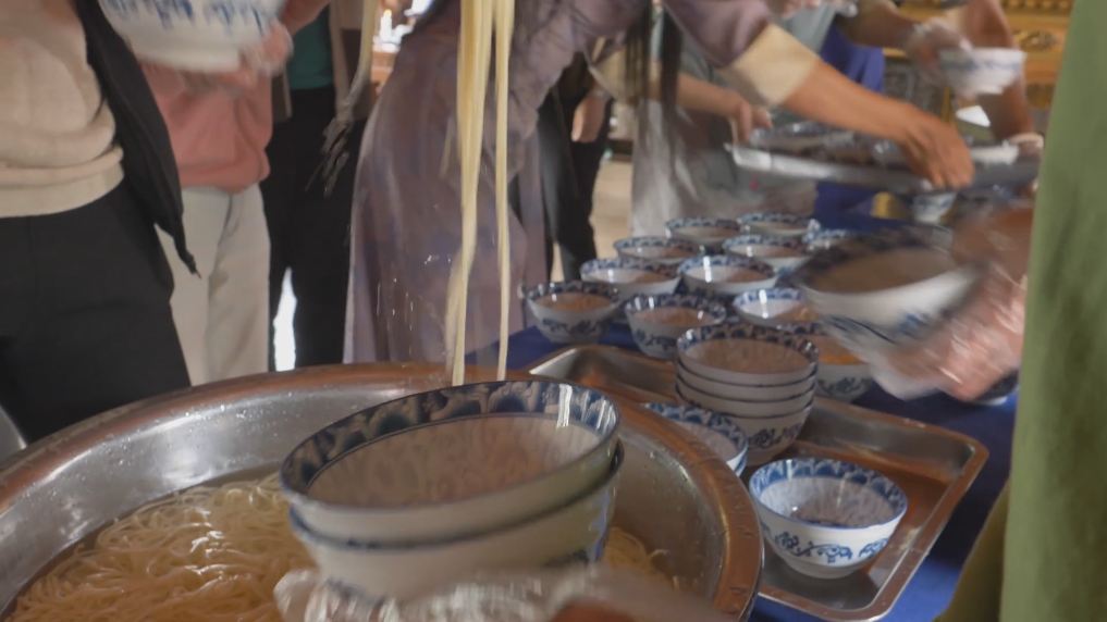 藏面、重慶小面、蘭州拉面、青海釀皮、新疆大盤(pán)雞拌面、陜西臊子面、吉林冷面、北京炸醬面……面師傅把把上勁、壓面機(jī)聲聲軋壓、食客們大快朵頤。