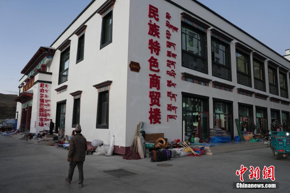 9月30日,位于西藏阿里地區(qū)普蘭縣唐噶邊貿(mào)市場旁的尼泊爾強(qiáng)巴國際市場民族特色商貿(mào)樓。中新社記者 崔楠 攝
