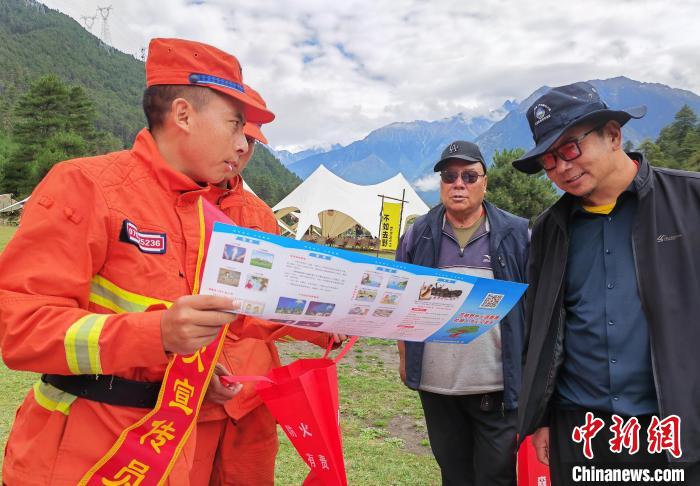 “同志您好,秋季氣候干燥,景區(qū)游玩一定要杜絕攜帶火種上山?!痹诓芸h嘎朗湖、崗云杉林景區(qū),森林消防員向游客們宣傳森林防滅火常識,提供助民幫困服務(wù),倡導(dǎo)游客安全出行、文明旅游。