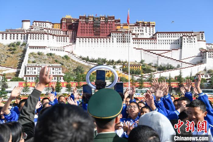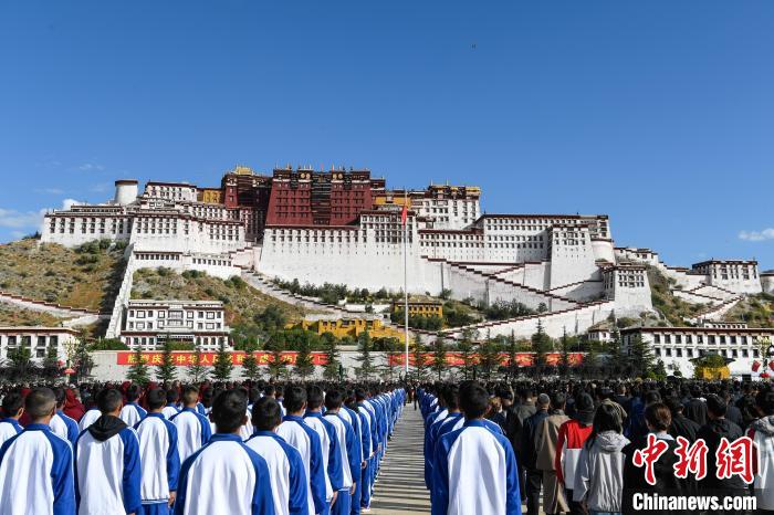 10月1日上午,西藏自治區(qū)在布達拉宮廣場舉行“升國旗、唱國歌”儀式,慶祝中華人民共和國成立75周年。中新社記者 貢嘎來松 攝