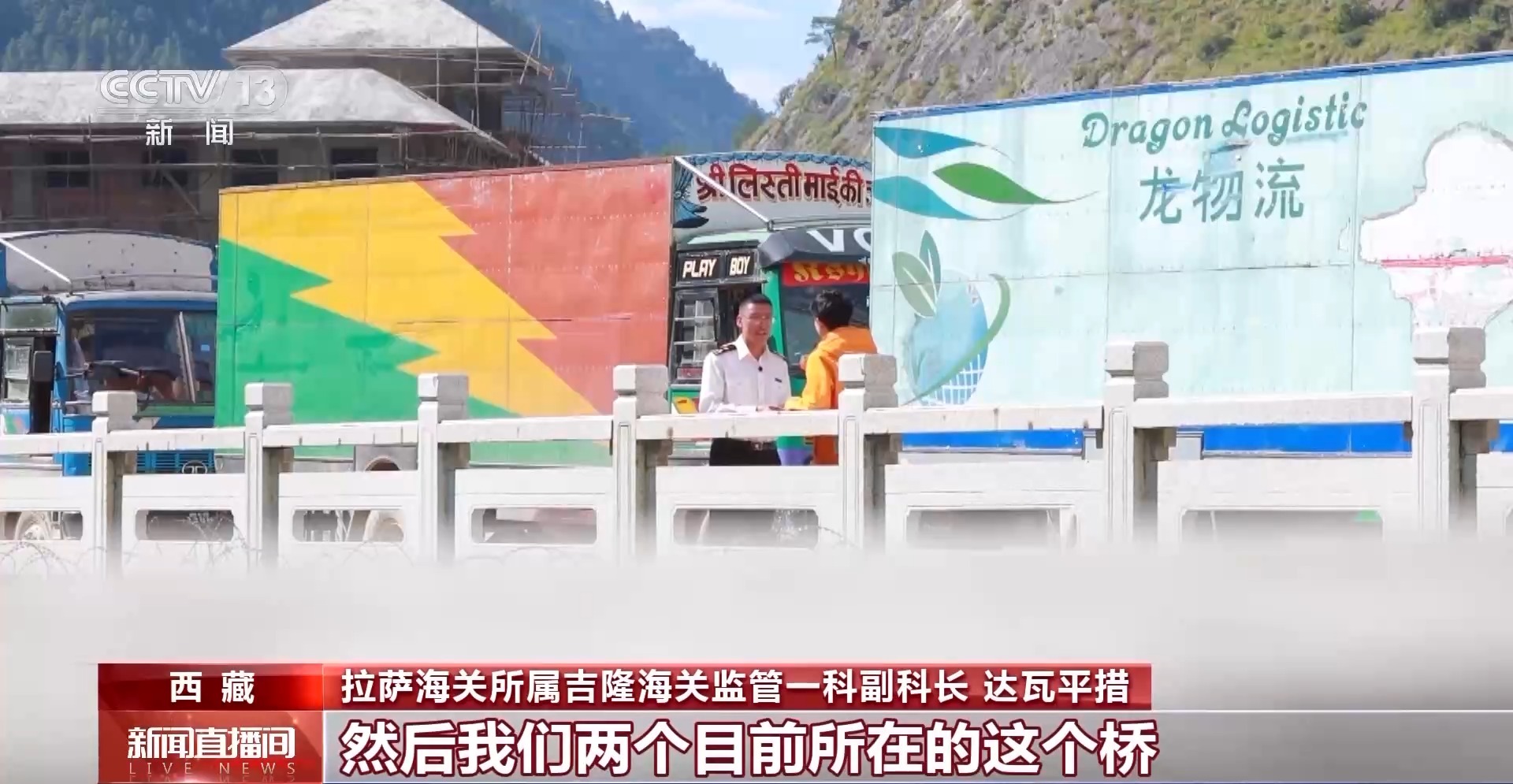 拉薩海關(guān)所屬吉隆海關(guān)監(jiān)管一科副科長 達瓦平措:我們所在的是第四代熱索橋。2015年尼泊爾“4.25地震”,吉隆口岸也是受災比較嚴重,然后在第三代的原址基礎(chǔ)上建了第四代橋。對我們?nèi)藛T往來、貿(mào)易往來發(fā)揮了重要作用。
