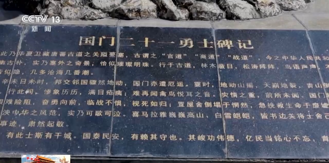 今天的吉隆口岸既是商旅之關(guān),也是勇士之關(guān)。在中尼兩國第48號界樁旁的這個21勇士雕塑,記錄著2015年4月25日,尼泊爾發(fā)生里氏8.1級地震,吉隆口岸一度成為“生命孤島”,中國青年邊檢官兵主動請纓,在等待馳援的時間里堅守國境,面對不斷發(fā)生的余震、滑坡和泥石流,他們除了協(xié)助中尼兩國邊民避險,每天最重要的工作就是將五星紅旗準時在吉隆口岸升起。