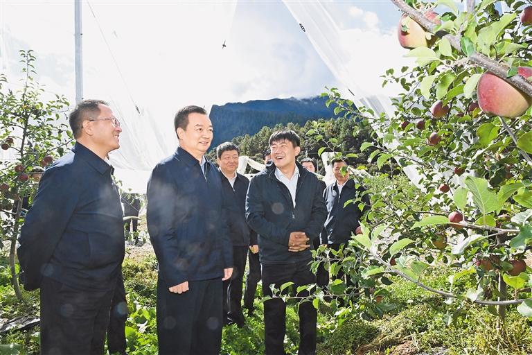 在巴宜區(qū)百巴鎮(zhèn)百巴村松贊帳篷營地、增巴村煙臺大山果業(yè)開發(fā)有限公司,王君正詳細(xì)了解了鄉(xiāng)村文旅融合、生態(tài)產(chǎn)業(yè)發(fā)展等情況。他指出,要加快推動文化旅游產(chǎn)業(yè)發(fā)展,堅持以文塑旅、以旅彰文,因地制宜探索新業(yè)態(tài)、新模式,培育品牌,惠及群眾,擴(kuò)大影響,形成合力。堅持在保護(hù)中發(fā)展、在發(fā)展中保護(hù),統(tǒng)籌生態(tài)修復(fù)和生態(tài)惠民,著力加強(qiáng)交通等基礎(chǔ)設(shè)施建設(shè),賦能鄉(xiāng)村全面振興。堅定不移把培育產(chǎn)業(yè)、發(fā)展產(chǎn)業(yè)、壯大產(chǎn)業(yè)擺在重要位置,立足特色優(yōu)勢資源,加強(qiáng)農(nóng)牧業(yè)技術(shù)推廣應(yīng)用,加快地方特色品種選育和良種繁育推廣,加大典型宣傳力度,發(fā)揮示范引領(lǐng),促進(jìn)鄉(xiāng)村產(chǎn)業(yè)振興。完善利益聯(lián)結(jié)機(jī)制,持續(xù)發(fā)展壯大村集體經(jīng)濟(jì)和實體產(chǎn)業(yè)項目,推動農(nóng)業(yè)增效益、農(nóng)民增收入、農(nóng)村增活力,實現(xiàn)各民族共同發(fā)展、共同富裕。