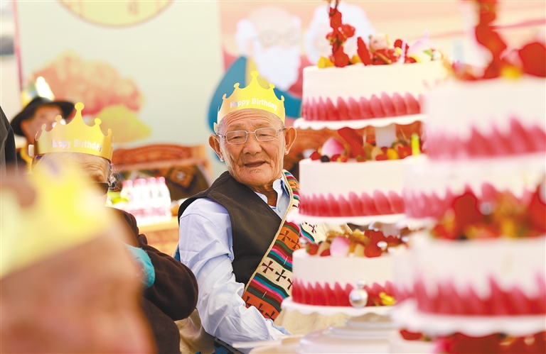 圖為拉薩市墨竹工卡縣民政局和退役軍人事務(wù)局舉行“我們的節(jié)日·重陽(yáng)”主題活動(dòng),現(xiàn)場(chǎng)為老人們集體過(guò)生日。記者 唐斌 通訊員 洛克 攝