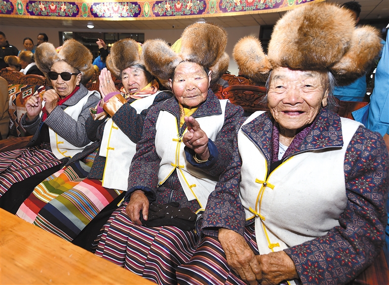 圖為拉薩市社會(huì)福利院的老人們圍坐在一起歡度重陽(yáng)節(jié)。記者 唐斌 攝