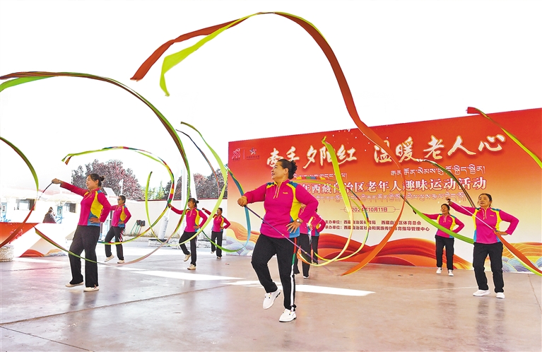 圖為2024年西藏自治區(qū)“牽手夕陽(yáng)紅 溫暖老人心”老年人趣味運(yùn)動(dòng)活動(dòng)現(xiàn)場(chǎng)。記者 唐斌 攝