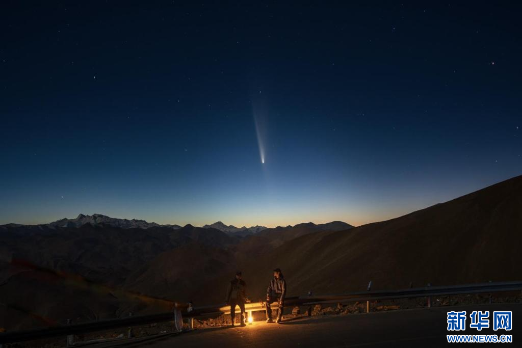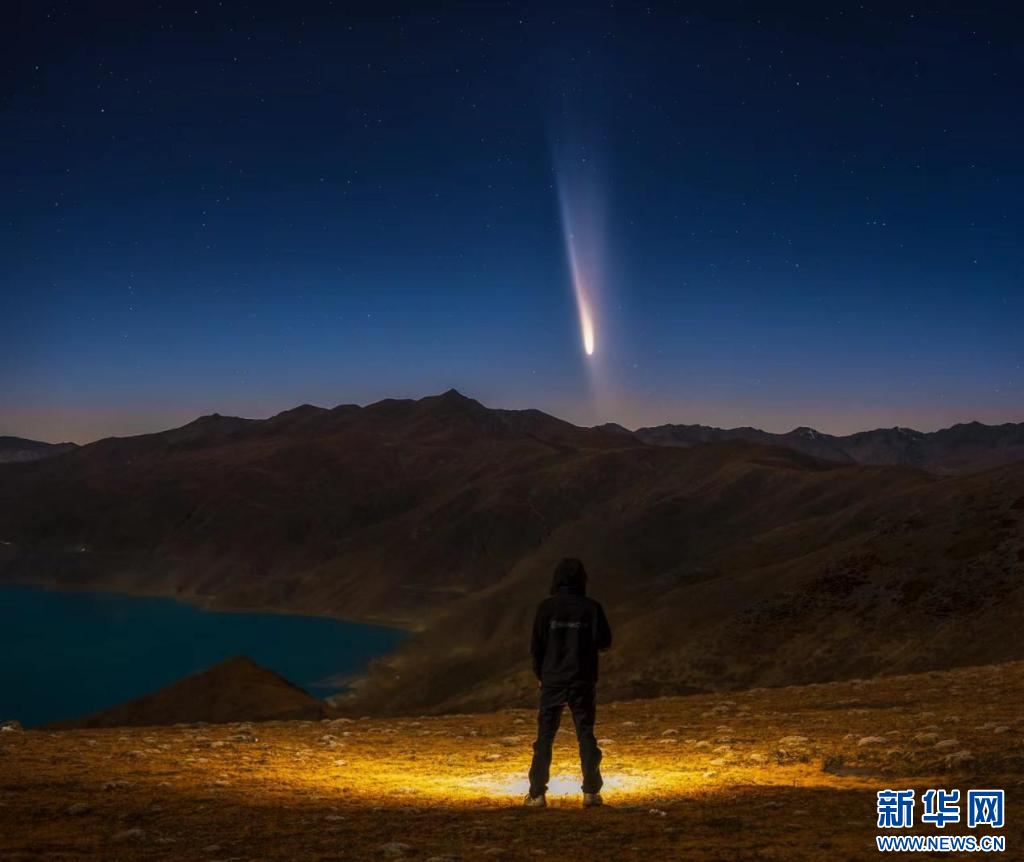 10月13日,拍攝于羊卓雍措1號(hào)觀景臺(tái)的彗星。新華網(wǎng)發(fā) 范禹杰 攝