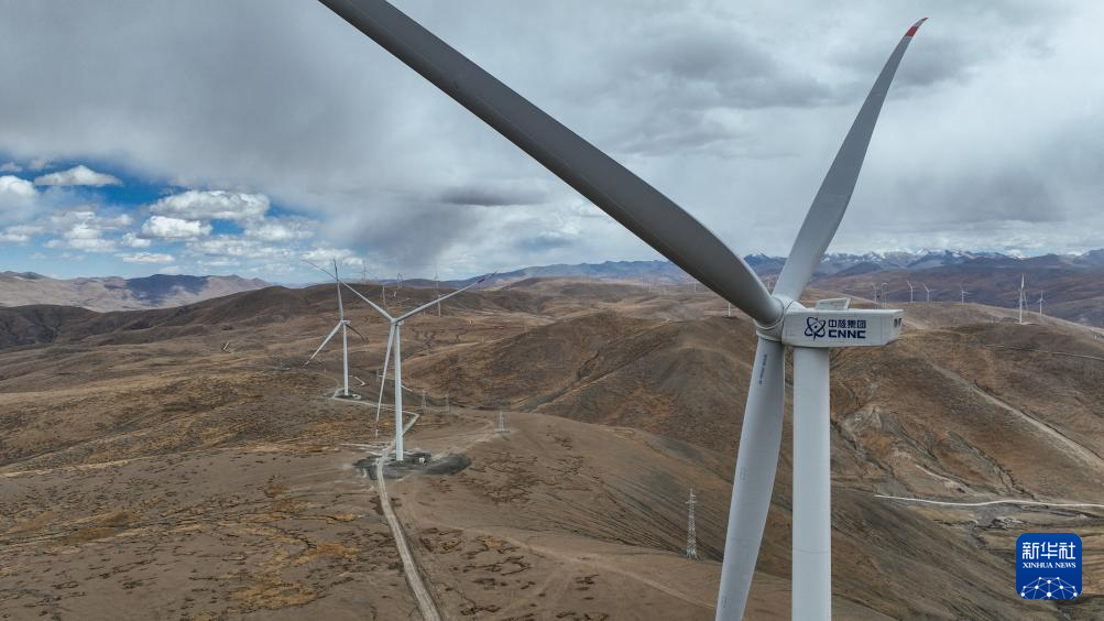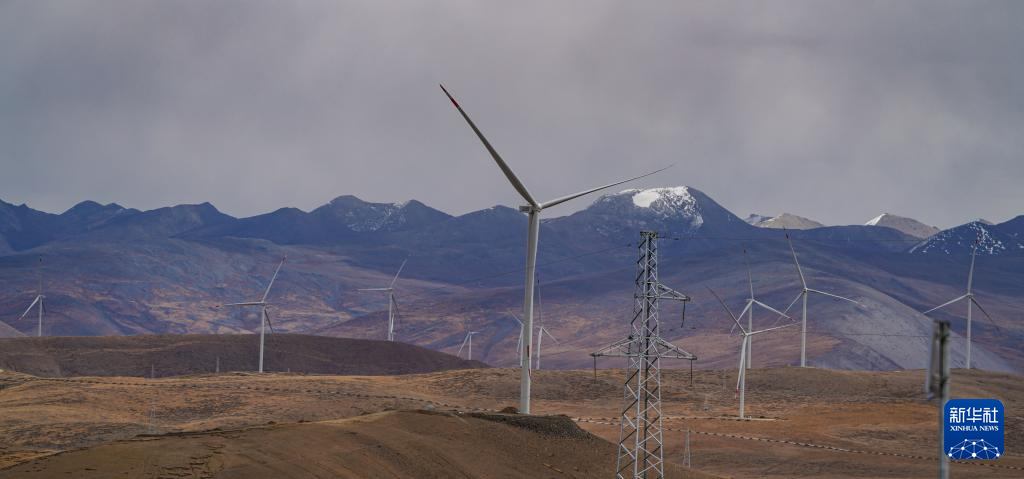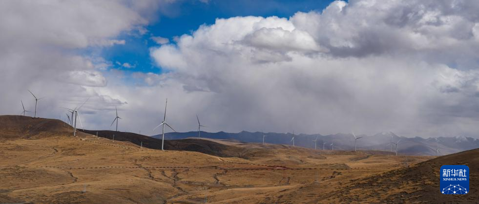 10月17日拍攝的位于西藏日喀則市薩迦縣的風(fēng)力發(fā)電機組。新華社記者 晉美多吉 攝??