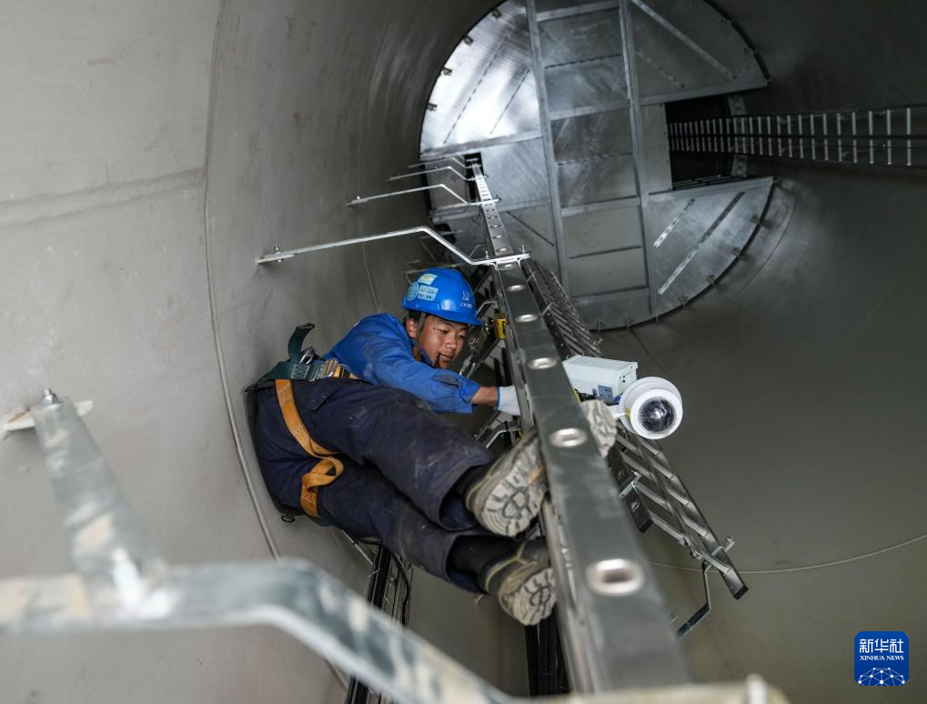 10月17日,工作人員在檢修風(fēng)機內(nèi)部的監(jiān)控設(shè)備。新華社記者 晉美多吉 攝??