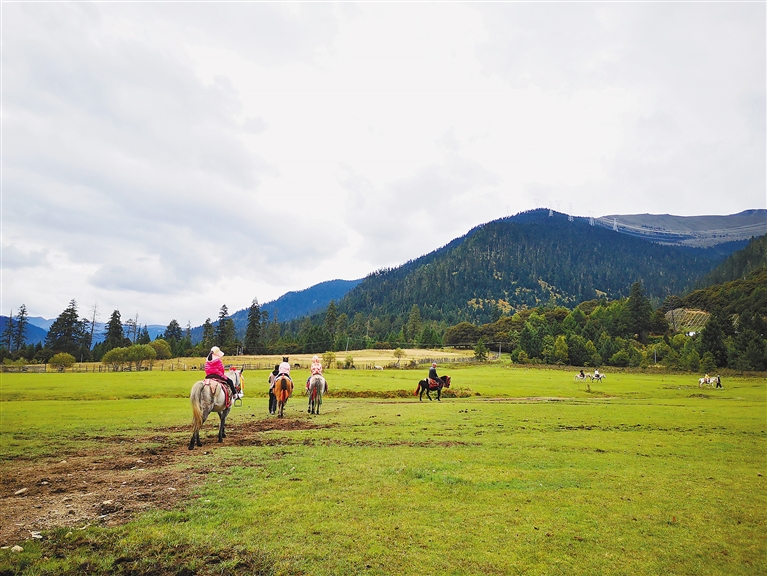 游客在林芝市魯朗小鎮(zhèn)體驗騎馬。記者 周輝 攝