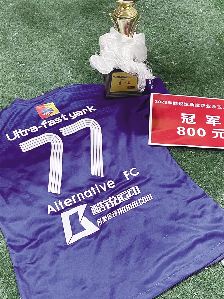 而最能證明她們訓(xùn)練成果的就是足球聯(lián)賽。 2023年“迎新杯”酷銳運(yùn)動拉薩業(yè)余足球5人制(女子組)比賽、第二屆“亞克杯”女子5人制交流賽在拉薩開賽,這也是西藏少有的女足賽事。米央以拉薩另類女子足球隊(duì)隊(duì)員身份參賽,盡管米央是隊(duì)內(nèi)年紀(jì)最小的成員,但她的能力絲毫不遜于任何人。米央所在的這支由高中生、大學(xué)生等組成的隊(duì)伍,經(jīng)過10場比賽,拼盡全力最終奪得冠軍?!懊慨?dāng)足球在我腳下滾動飛躍,每當(dāng)我奔跑在綠茵場上,那種肆意和快樂讓我堅(jiān)定我的選擇,我的夢想是踢進(jìn)中國國家女子足球隊(duì)?!泵籽胝f。雖然她與夢想還有距離,但內(nèi)心那股熊熊燃燒的信念力量,成為她刻苦訓(xùn)練的“定心丸”。