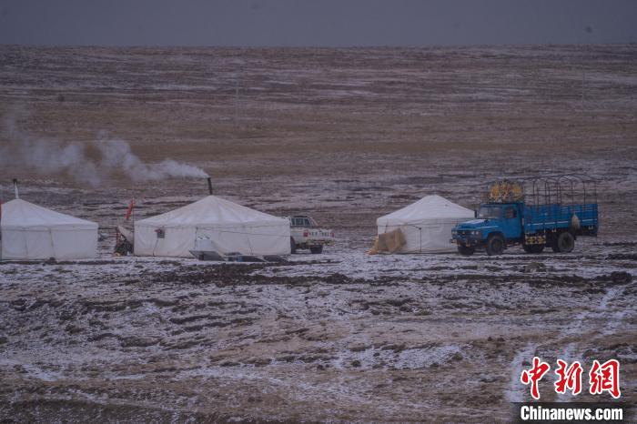 10月23日,西藏自治區(qū)那曲市安多縣多瑪鄉(xiāng)牧民在雪中放牧。當(dāng)日,一場雪將藏北草原裝扮得如詩如畫。牧民們在這銀裝素裹的天地間,開始了雪中放牧的生活。牛羊在雪地中悠閑覓食,牧民駕駛著摩托車,在雪中放牧,形成了一幅動人的風(fēng)景畫。圖為牧民在草原上搭建的帳篷。中新社記者 貢嘎來松 攝