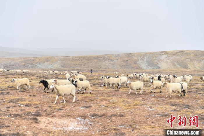 10月23日,西藏自治區(qū)那曲市安多縣多瑪鄉(xiāng)牧民在雪中放牧。當(dāng)日,一場雪將藏北草原裝扮得如詩如畫。牧民們在這銀裝素裹的天地間,開始了雪中放牧的生活。牛羊在雪地中悠閑覓食,牧民駕駛著摩托車,在雪中放牧,形成了一幅動人的風(fēng)景畫。圖為羊群在草原上覓食。中新社記者 貢嘎來松 攝
