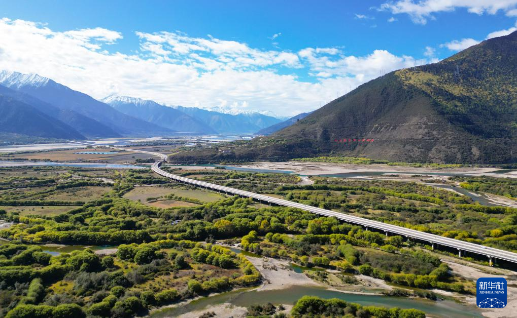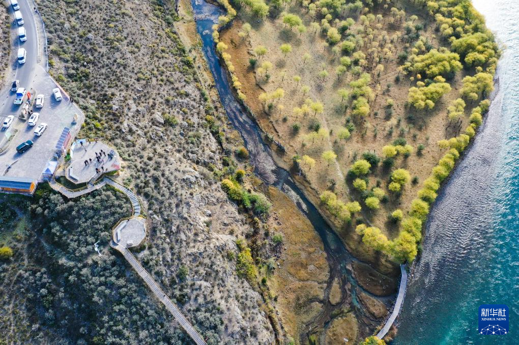 西藏林芝雅尼國家濕地公園內(nèi)的觀景臺和步行棧道(10月24日攝,無人機(jī)照片)。新華社記者 李賀 攝