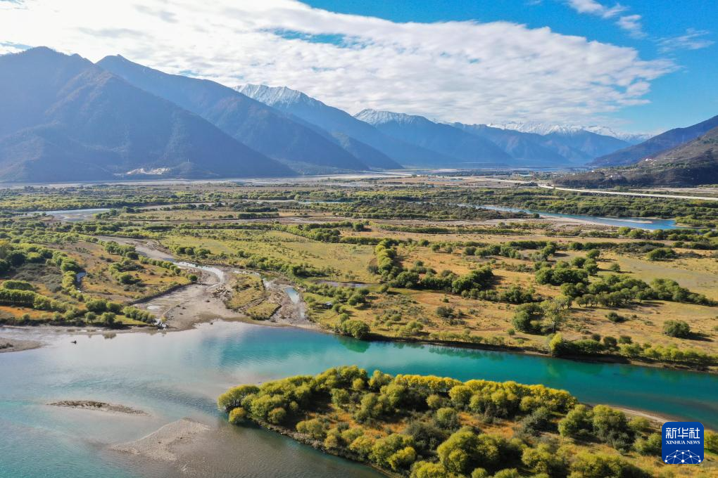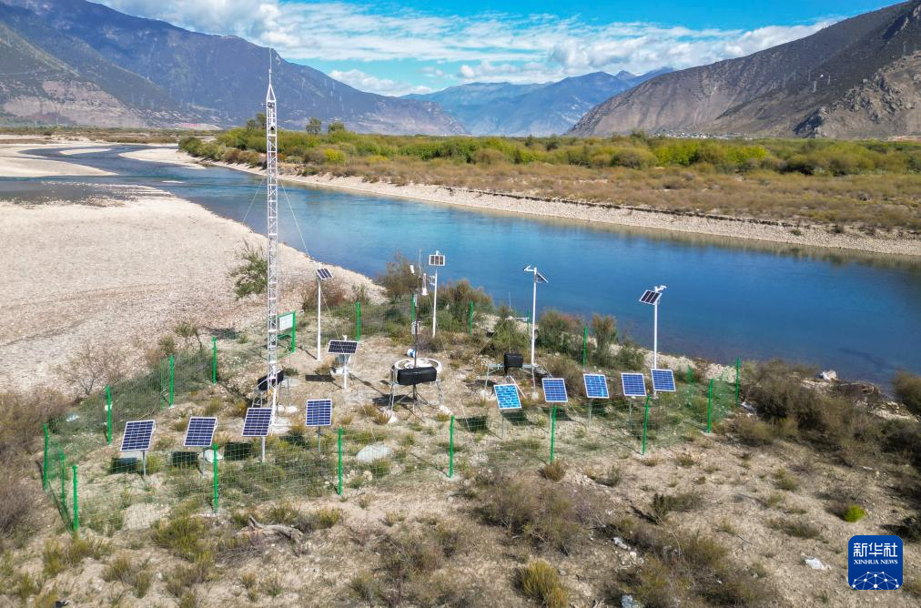 這是在林芝雅尼國家濕地公園尼洋河畔拍攝的生態(tài)監(jiān)測系統(tǒng)(10月24日攝,無人機(jī)照片)。新華社記者 劉天宇 攝