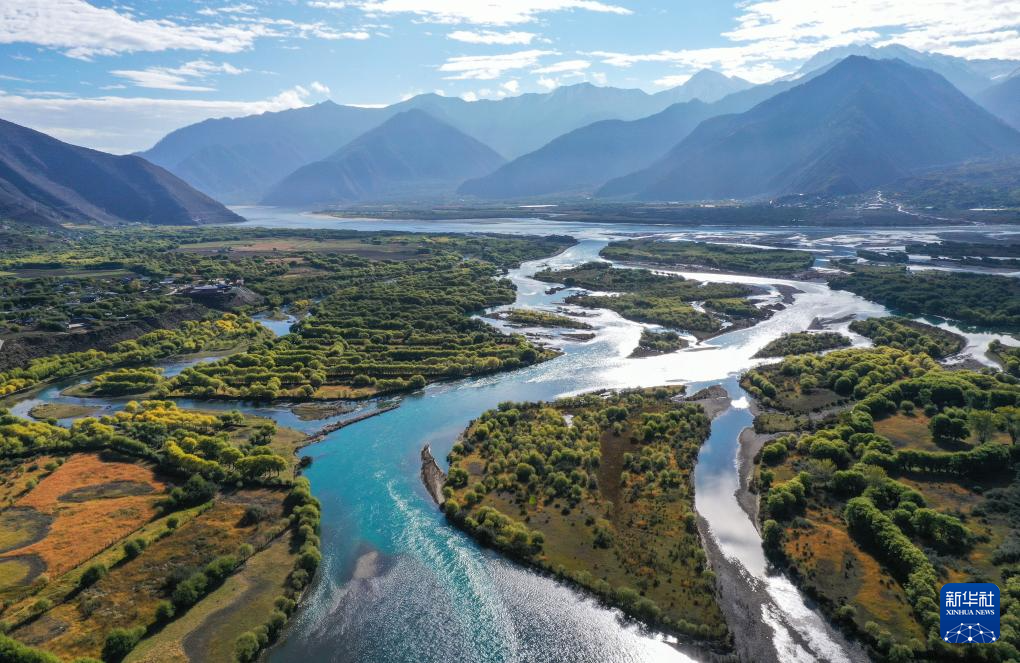 這是10月24日在西藏林芝雅尼國家濕地公園內(nèi)拍攝的尼洋河(無人機(jī)照片)。新華社記者 李賀 攝