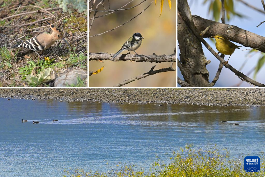 這是10月24日在西藏林芝雅尼國家濕地公園內(nèi)拍攝的鳥類(拼版照片)。新華社記者 李賀 攝