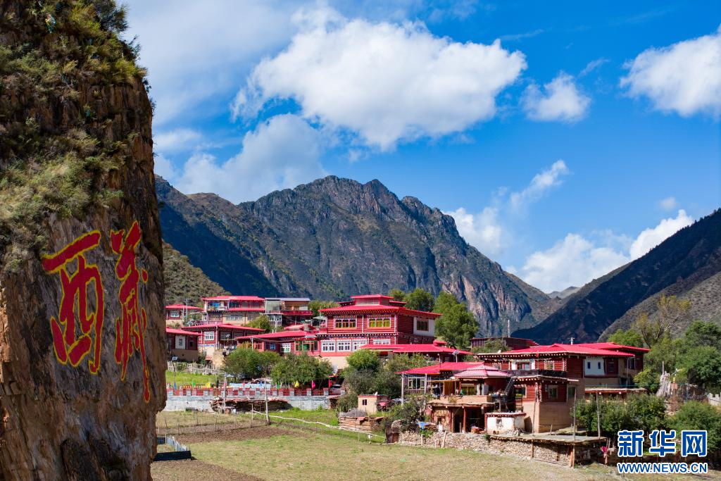 10月21日拍攝的“西藏解放第一村”昌都市江達縣崗托村藏式樓房(無人機照片)。新華網(wǎng) 旦增努布 攝
