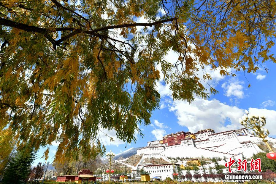 11月6日,位于西藏拉薩的世界文化遺產(chǎn)布達(dá)拉宮在周圍樹葉的映襯下色彩斑斕。中新社記者 李林 攝