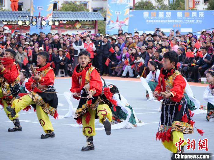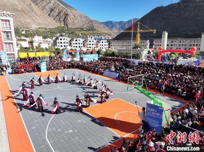 圖為西藏自治區(qū)首屆鄉(xiāng)村籃球聯(lián)賽2024“千年鹽田”“康BA”比賽前文藝演出。昌都市芒康縣委宣傳部供圖