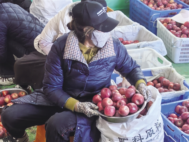 果農(nóng)正在分揀蘋果。