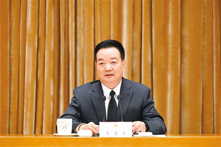 王君正在講話中指出,習(xí)近平總書記在慶祝全國(guó)人民代表大會(huì)成立70周年大會(huì)上的重要講話,全面回顧了黨領(lǐng)導(dǎo)全國(guó)人民建立和完善人民代表大會(huì)制度的光輝歷程,系統(tǒng)總結(jié)了實(shí)行人民代表大會(huì)制度的顯著政治優(yōu)勢(shì)和寶貴經(jīng)驗(yàn),深刻闡釋了新時(shí)代人民代表大會(huì)制度一系列理論和實(shí)踐創(chuàng)新重大成果,對(duì)在新時(shí)代堅(jiān)持好、完善好、運(yùn)行好人民代表大會(huì)制度提出明確要求,進(jìn)一步豐富和發(fā)展了黨關(guān)于堅(jiān)持和完善人民代表大會(huì)制度的理論,是一篇閃耀著馬克思主義真理光輝的綱領(lǐng)性文獻(xiàn),為新時(shí)代新征程充分發(fā)揮國(guó)家根本政治制度作用、堅(jiān)持和發(fā)展全過程人民民主、推進(jìn)國(guó)家治理體系和治理能力現(xiàn)代化指明了前進(jìn)方向、提供了根本遵循。