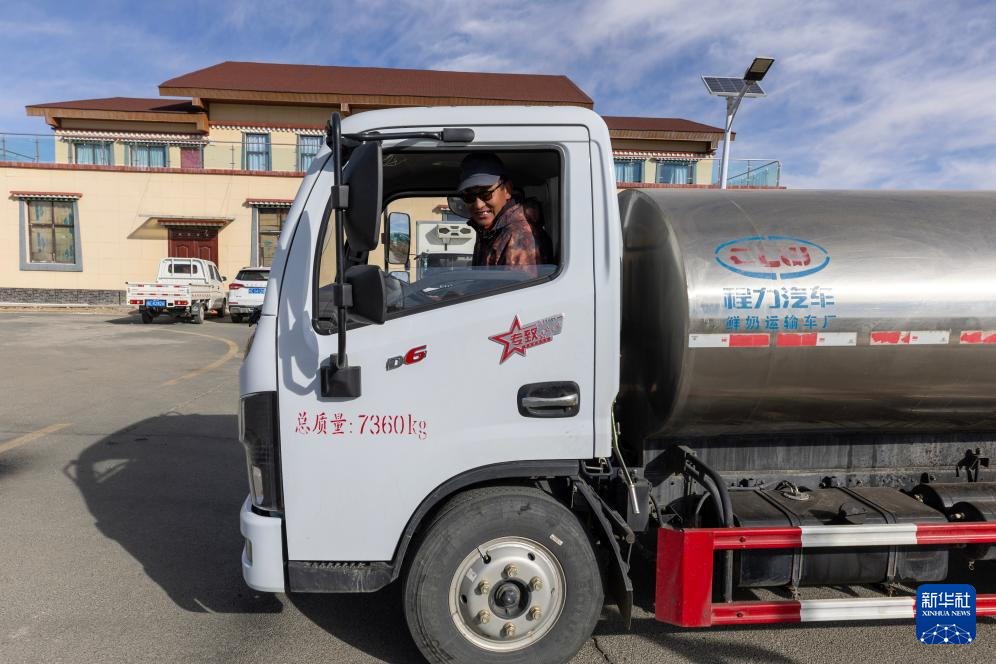 11月28日,駕駛員用罐車將巴氏殺菌后的新鮮牦牛奶運(yùn)往拉薩市場。新華社記者 姜帆 攝