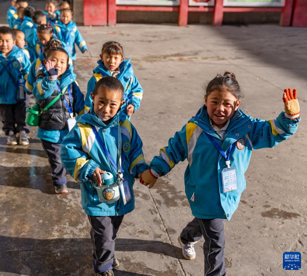 12月13日,陳塘鎮(zhèn)幼兒園的孩子們前往教室。