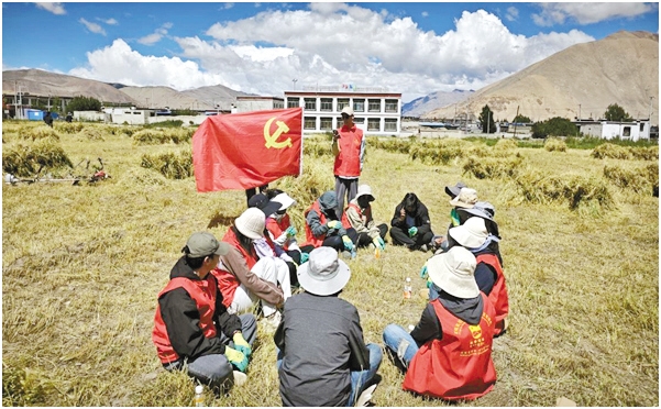圖為薩爾鄉(xiāng)開展“助農(nóng)秋收”志愿活動。