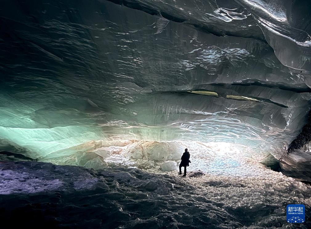 經(jīng)初步勘測(cè),該冰洞深約152米,寬約18.2米,在陽(yáng)光的照射下,冰壁晶瑩剔透,十分壯美。