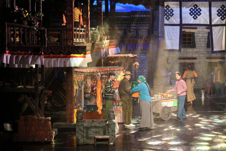 2022年3月23日,話劇《八廓街北院》在西藏自治區(qū)藏戲演藝中心上演。該劇由西藏自治區(qū)話劇團(tuán)創(chuàng)作演出,以拉薩八廓街為背景,展現(xiàn)了一座多民族聚居院落的鄰里深情。新華社記者 姜帆 攝