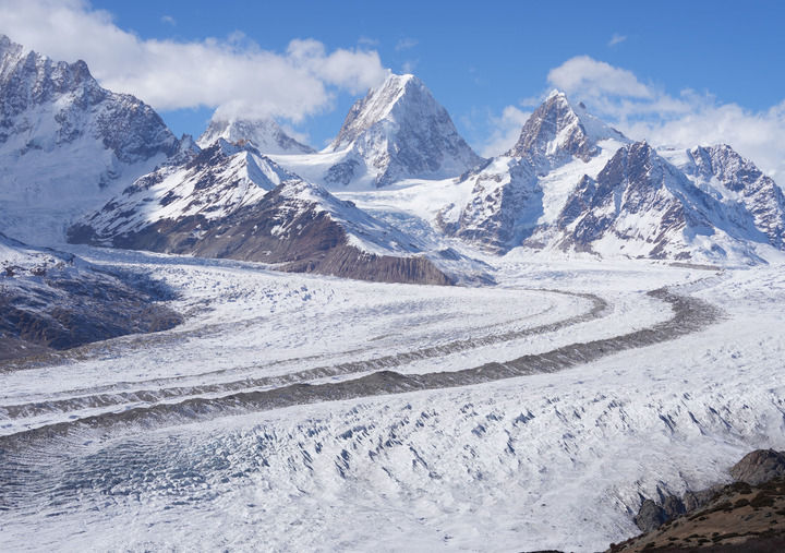 來(lái)古冰川位于西藏自治區(qū)昌都市八宿縣然烏鎮(zhèn)境內(nèi),因其外觀形態(tài)獨(dú)特壯美,成為川藏公路游客的打卡勝地(2024年12月18日攝)。新華社記者 丁汀 攝