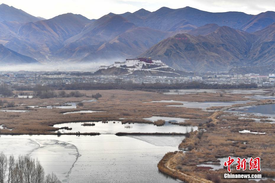 12月29日,冬日早晨,拉薩美如畫(huà)。拉薩河被晨光染成金色,河水靜靜流淌。西藏自治區(qū)拉薩市的拉魯濕地國(guó)家級(jí)自然保護(hù)區(qū)內(nèi),候鳥(niǎo)歡快,忙著覓食、嬉戲。遠(yuǎn)處,布達(dá)拉宮與拉魯濕地相互映襯,構(gòu)成了一幅絕美畫(huà)卷。圖為12月29日,晨霧中的布達(dá)拉宮。貢確 攝