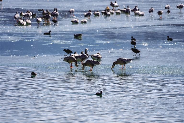 據(jù)最新的觀測數(shù)據(jù)顯示,今年拉魯濕地的候鳥數(shù)量相比以往有了顯著增加。種類繁多的候鳥或自由翱翔,或嬉戲覓食,或悠然休憩,構成了一幅生動和諧的自然畫卷。其中,黑頸鶴、斑頭雁、赤麻鴨等常見候鳥的身影成為了拉魯濕地最美的風景線。