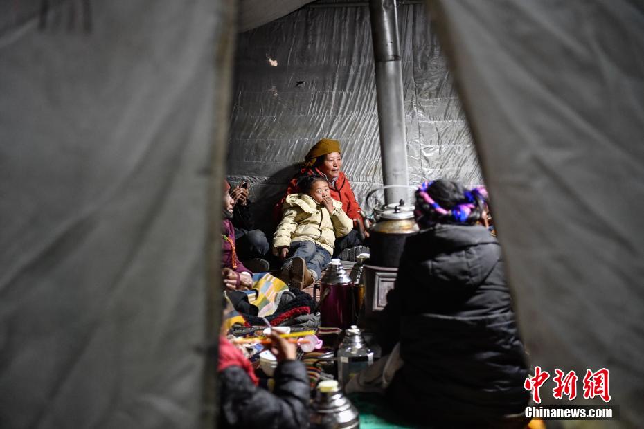 1月7日9時5分,西藏自治區(qū)日喀則市定日縣措果鄉(xiāng)附近(東經(jīng)87.45度,北緯28.50度)發(fā)生6.8級地震。日喀則市官方介紹,經(jīng)初步排查,截至當(dāng)日15時,地震共造成95人遇難,130人受傷,房屋損毀正在統(tǒng)計中。圖為日喀則拉孜縣境內(nèi)的村民在臨時搭建的帳篷里準(zhǔn)備過夜。中新社記者 貢桑拉姆 攝