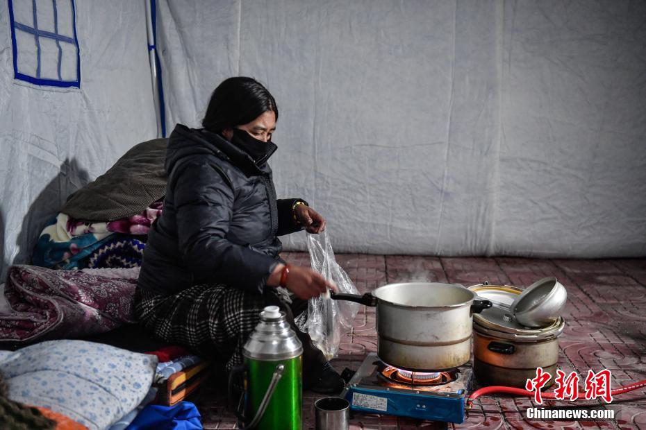 1月7日9時5分,西藏自治區(qū)日喀則市定日縣措果鄉(xiāng)附近(東經(jīng)87.45度,北緯28.50度)發(fā)生6.8級地震。日喀則市官方介紹,經(jīng)初步排查,截至當(dāng)日15時,地震共造成95人遇難,130人受傷,房屋損毀正在統(tǒng)計中。圖為日喀則拉孜縣境內(nèi)的村民在臨時搭建的帳篷里做飯。中新社記者 貢嘎來松 攝