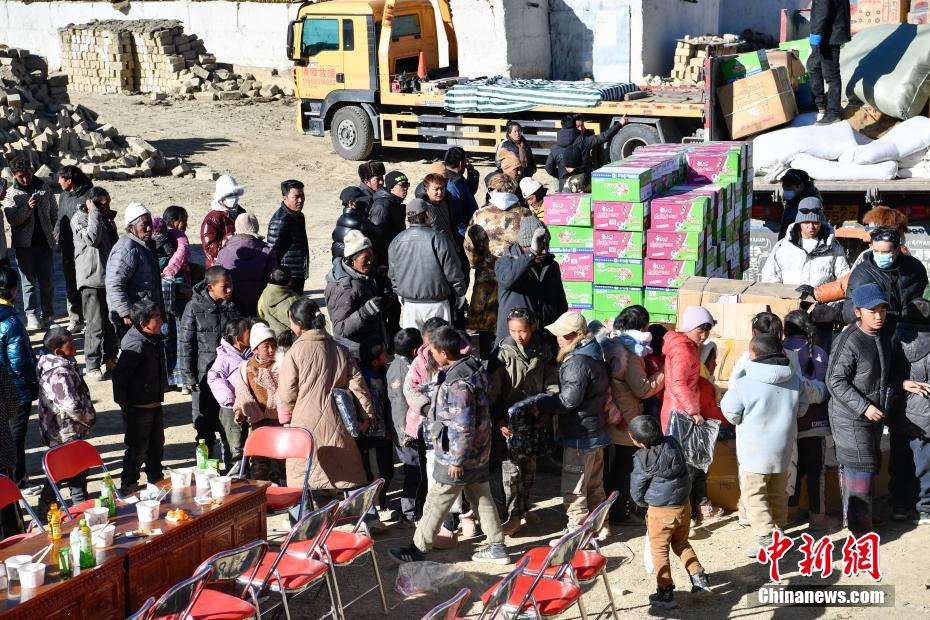 1月9日,西藏自治區(qū)定日縣曲洛鄉(xiāng)措昂村安置點(diǎn),愛(ài)心企業(yè)為受災(zāi)民眾發(fā)放生活物資。當(dāng)日,位于西藏自治區(qū)定日縣曲洛鄉(xiāng)措昂村安置點(diǎn),西藏各級(jí)救援人員和愛(ài)心企業(yè)不斷轉(zhuǎn)運(yùn)、發(fā)放生活物資、搭建安置活動(dòng)板房、全力保障受災(zāi)民眾的飲食供應(yīng)等,保障受災(zāi)民眾基本生活。中新社記者 貢嘎來(lái)松 攝