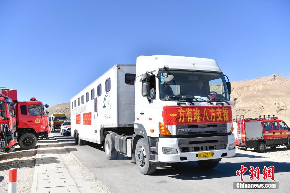 1月9日,西藏自治區(qū)定日縣曲洛鄉(xiāng)措昂村,滿(mǎn)載救災(zāi)物資的貨車(chē)抵達(dá)安置點(diǎn)。當(dāng)日,位于西藏自治區(qū)定日縣曲洛鄉(xiāng)措昂村安置點(diǎn),西藏各級(jí)救援人員和愛(ài)心企業(yè)不斷轉(zhuǎn)運(yùn)、發(fā)放生活物資、搭建活動(dòng)板房、全力保障受災(zāi)民眾的飲食供應(yīng)等,保障受災(zāi)民眾基本生活。中新社記者 貢嘎來(lái)松 攝