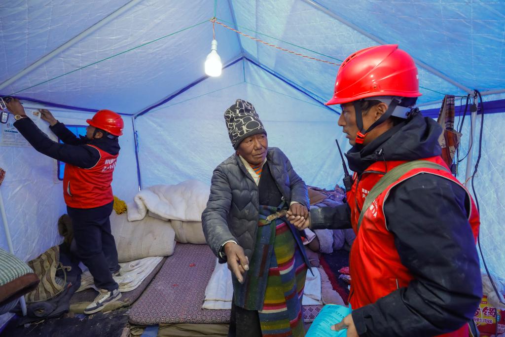 塘仁村63歲村民桑杰卓瑪家的三間帳篷搭建在自家震損房屋旁邊的草地里,國(guó)家電網(wǎng)搶險(xiǎn)救援人員為她從市電主線接通入戶。“這下能檢查的項(xiàng)目更全了。”現(xiàn)場(chǎng)攜帶電子儀器、準(zhǔn)備為桑杰卓瑪一家進(jìn)行入戶體檢的醫(yī)療保障人員說(shuō)。