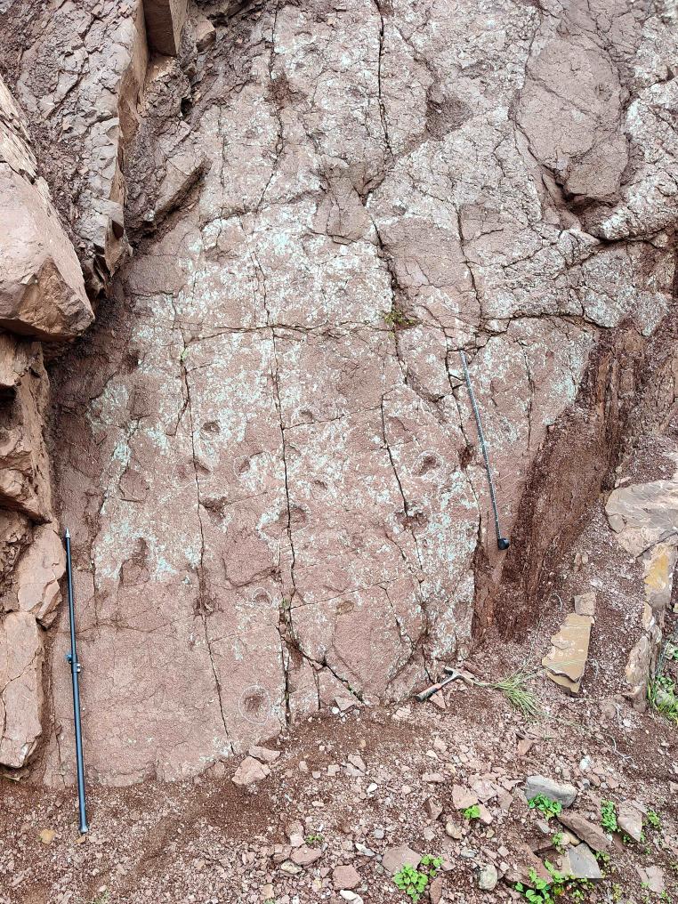 發(fā)現(xiàn)小型蜥腳類恐龍足跡的巖石石壁。(受訪者供圖)