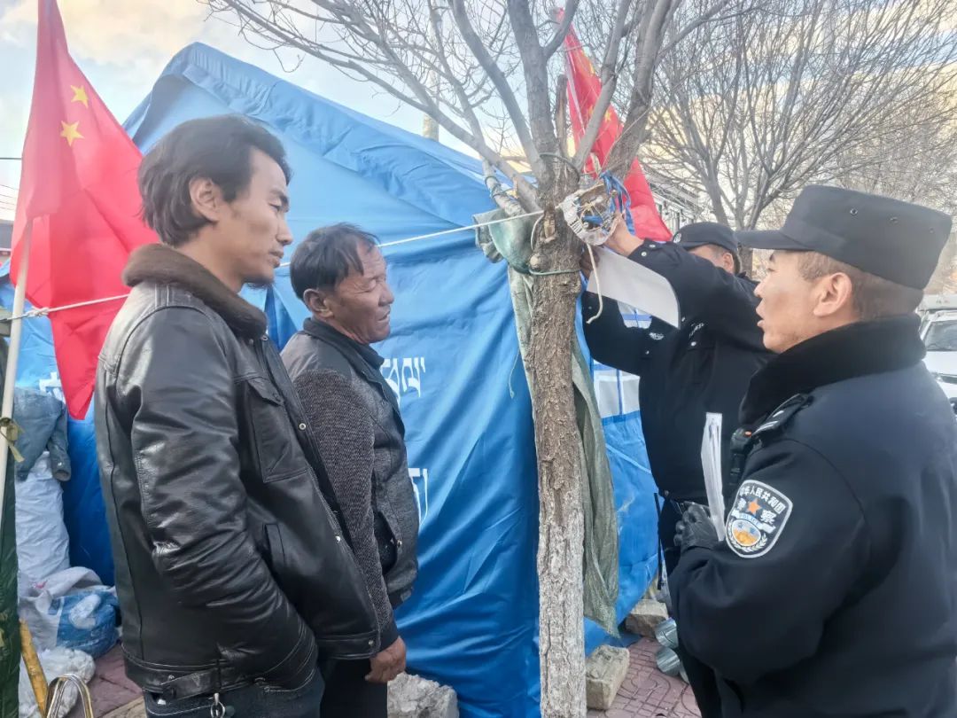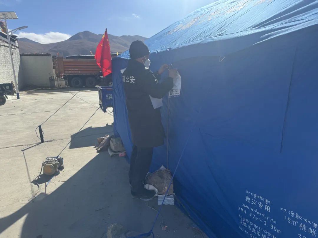 災(zāi)情如令,責(zé)任重于泰山。在這場爭分奪秒與時(shí)間賽跑的抗震救災(zāi)戰(zhàn)斗中,拉孜公安始終堅(jiān)定地與群眾并肩同行,以“伴隨式”守護(hù)的帳篷警務(wù)室,為受災(zāi)群眾筑牢安全防線。一頂頂 “帳篷警務(wù)室” 以迅雷不及掩耳之勢搭建完成,恰似一座座堅(jiān)固的堡壘;一面面鮮艷的黨旗在廢墟之上獵獵作響,傲然飄揚(yáng),它們共同構(gòu)成了守護(hù)受災(zāi)群眾生命財(cái)產(chǎn)安全的鋼鐵長城,成為抗震救災(zāi)戰(zhàn)場上一道令人動容的亮麗風(fēng)景線 。